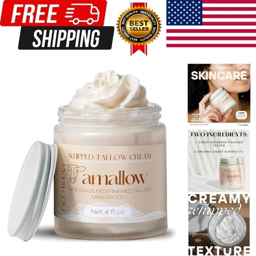 100% Grass Fed Beef Tallow for Skin Care - Face + Body - Whipped Moisturizer ...