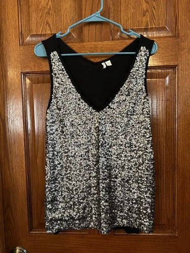 Cato L Black Sleeveless Tank With Silver Sequence Front Pullover V Neck