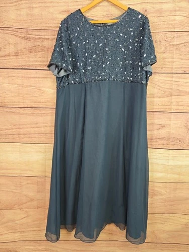 POMODORO size 24 blue sequin & beaded long evening dress