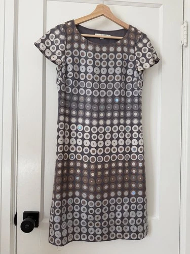 Boden Silk Mod Print Geometric Sequin Shift Dress Womans US 4 UK8: Classic Retro