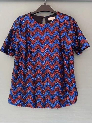 Stella Morgan Ladies Red & Blue Sequin Top Lined Sparkly Size 8 Christmas Party