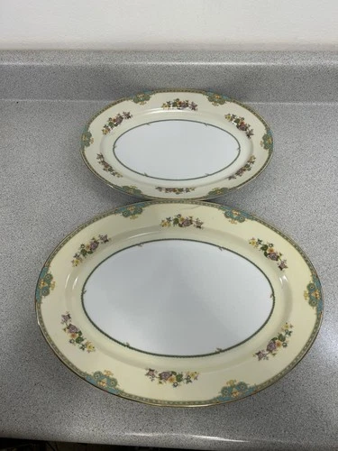 Meito Japan China Madrid Oval Serving Platter Set 2 ~ Gold Rim Multicolored