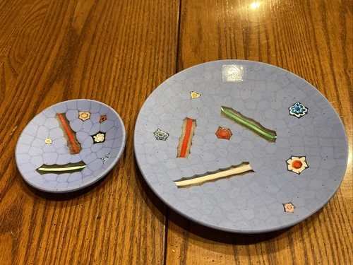 MURANO Italy Vietri Pesci Colorati Millefiori Decorative Blue Plates 5.75”&3.25”