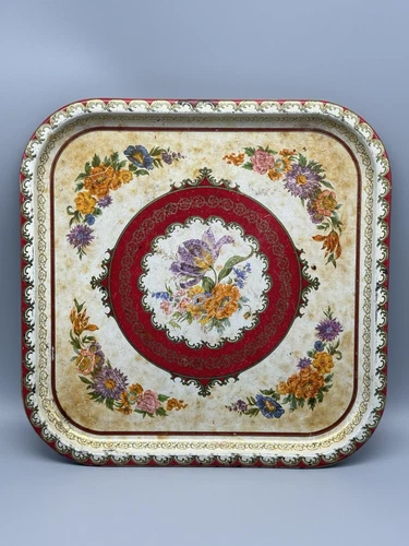 Daher Floral Metal Tin Tray Made in England 13.5 X 13.5 Inches - 11101