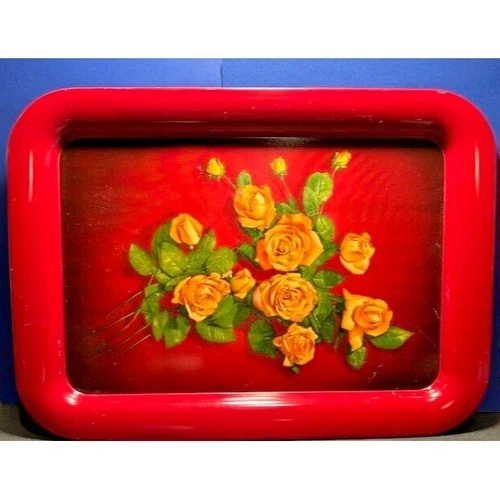 Vintage 1960s Metal TV Tray Red Yellow Roses Serving Grandmacore