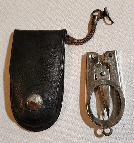 Vintage Foldable Miniature Scissors Stainless Steel Keychain & Case