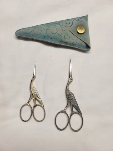 VINTAGE PAIR Embrodiery Scissors Shape of a Stork BOTH MADE IN GERMANY W/CASE