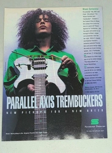 1992 Seymour Duncan Vintage Print Ad Pickups Blues Saraceno Rock Guitar Magazine
