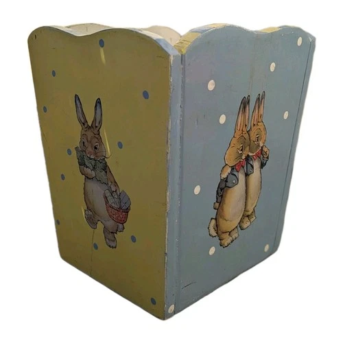 Peter Rabbit Style 14" Vintage Hand Painted Wooden Bunny Waste Bin Storage Box