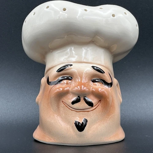 Ceramic Figural Chef Head 6.75" Shaker Caster Dredger for Sugar, Cocoa, Parmesan