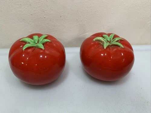 Vintage Red Heirloom Tomato Salt & Pepper Shakers Handpainted - Otagiri Japan