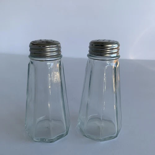 Vintage Salt and Pepper Shakers with Stainless Tops Set of 2 Glass Restaurant