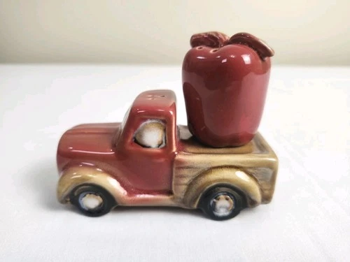 Vtg Ceramic Salt Pepper Shakers Pickup Truck Apple Japan Mid Century Farmhouse