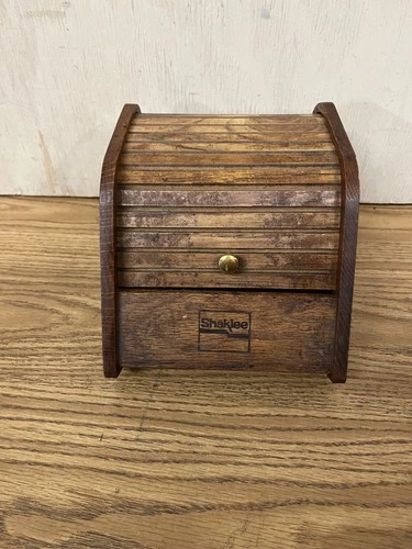 Shaklee Vintage Wood Roll Top Library Index Recipe Card File Box
