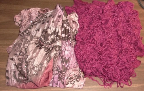 2 Cranberry /Wine Neck Scarves /Shawls - Semi Sheer Beaded & Pier One Puffy Knit