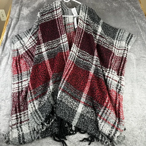 Woolrich Women's One Size Blanket Wrap Shawl Cape Poncho Gray Red New $60