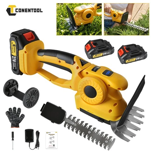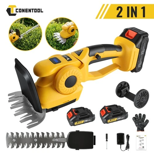 21V Cordless Hedge Trimmer & Grass Shear, 2 IN 1 Hand Held with 2000mAh Battery