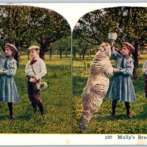 c1900s Cute Children Feeding Molly the Sheep Breakfast Milk Girl Stereoview V39