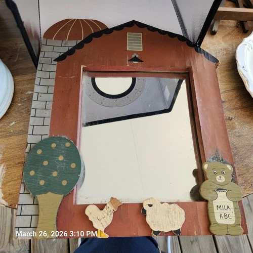 Vintage Primitive Wall Mirror Farm Theme Milk Bear ABC Sheep Chicken