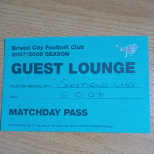 Ticket : Guest Lounge 2007/2008 6/10/2007 Bristol City v Sheffield United