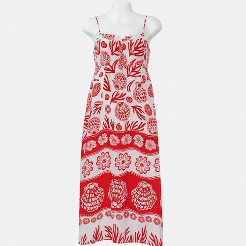 Calypso St Barth Maxi Dress Womens S Red White Linen Blend Shells Boho Resort