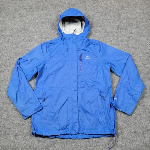LL Bean Jacket Mens Medium Blue Hooded TEK Waterproof Shell Rain Coat Hiking