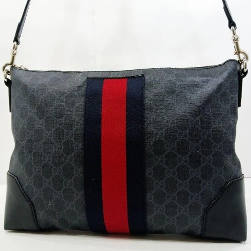 GUCCI GG Pattern Sherry Line Shoulder Bag Crossbody 474189 PVC Leather Black
