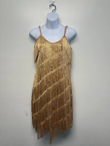 Gold Fringe Sequin Dress Ladie Small Shimmer Party / Cocktail / Mini Dress -NWT