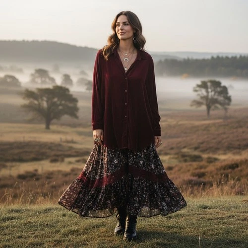 J JILL Burgundy Velvet Button Up Shirt Tunic Top XL Long Sleeve Boho Whimsigoth