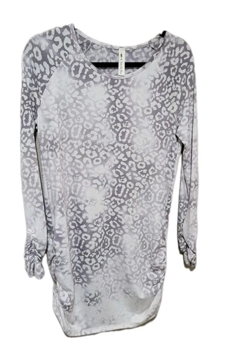 Vanilla Bay Shirt Women Medium Gray White Long Sleeve Ruched Sides/Sleeves NWOT