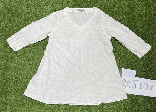 Flax Shirt Womens S White Linen Tunic Loose Lightweight Breathable Flowy Beach