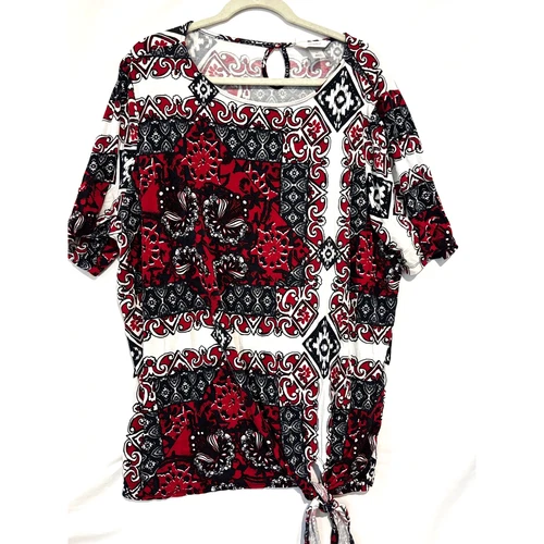 CJ Banks 2x Shirt Top Nautical Paisley work Short Sleeve Keyhole front Comfort