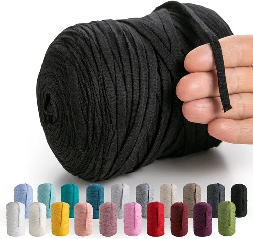 Cotton Yarn Ribbon Black 10mm T-shirt Yarn for Knitting, Macrame, Crochet