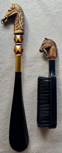 Vintage 1970’s EQUESTRIAN HORSE HEAD Shoe Horn&Clothes Brush Set Made In Japan