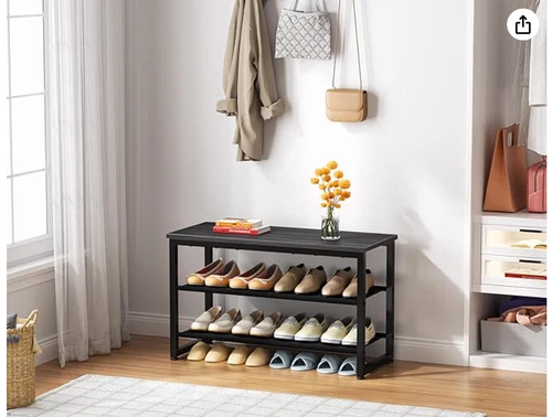 Shoe Rack, 3 Tier Shoe Storage with Wooden Shelf, Shoes Bench Storage with Seat