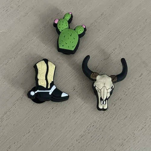 Western Country Croc Charms Set Of 3 Shoe Jewelry Cowboy Boot Skull Cactus