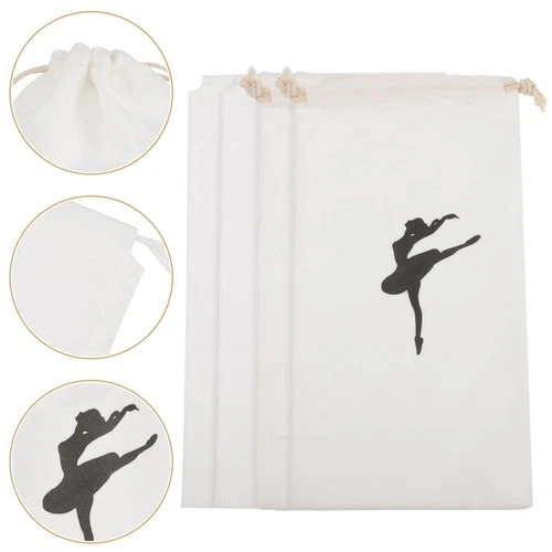 4 Pcs Washable Ballet Shoe Bags Drawstring Cotton Polyester Dance Shoe Carriers