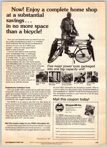 1981 PRINT AD Shopsmith Enjoy a Complete Home Shop No More Space Than a Bicycle