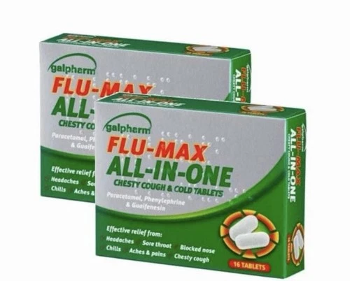 2 X GALPHARM FLU MAX ALL IN ONE CHESTY COUGH & COLD TABLETS - SORE THROAT PAIN
