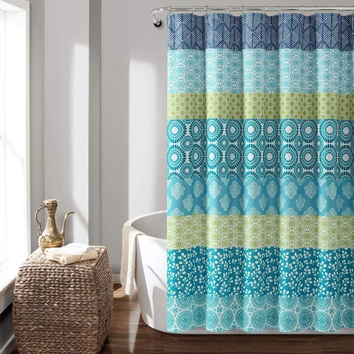 Bohemian Stripe Shower Curtain 72" W X 72" L Blue & Green - Bathroom Curtain - S