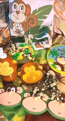 Monkey Theme Bathroom Set 8 Piece Shower Curtain Accessories Jungle Decor