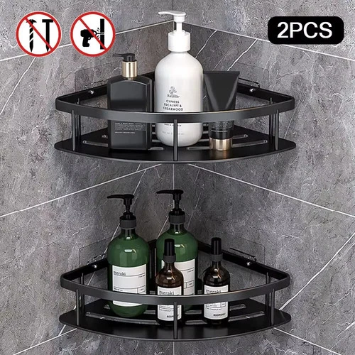 2-Tier Corner Shower Caddy Shelf – Wall-Mounted Aluminium Bathroom Organizer