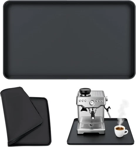 Silicone Coffee Machine Mat, 18x11in with Raised Edges, Anti-Slip Kitchen Workt