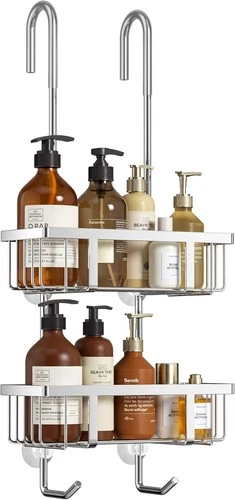 Josmimic Silver Shower Caddy 2-Tier Over Door Drill Free Bathroom Shelf Organise