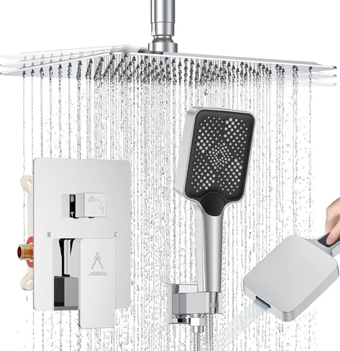 Chrome Shower Faucet Set,Rainfall Shower Head with Handheld Shower,Two Functions