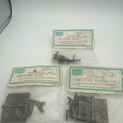 VTG SEARS interior Shutter Hardware Hinges & knob And Hook Set antique Brass NOS
