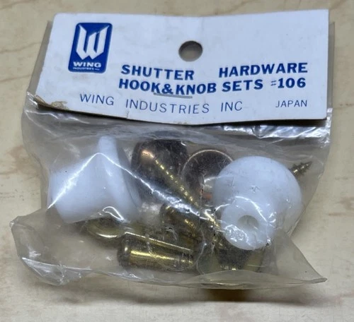 Vintage Wing industries Shutter Hardware Hook & White Knob Set # 106 NIP