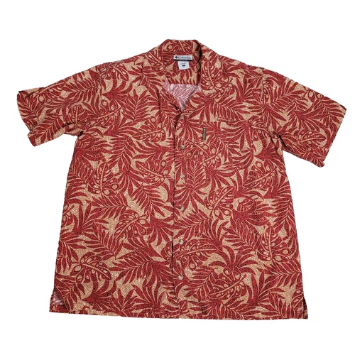 Columbia Hawaiian Shirt Men's Large Red Tropical Leaves Short Sleeve Beach