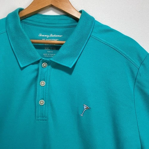 Tommy Bahama IslandZone Teal Supima Cotton Martini Polo Shirt XXL Trim Fit
