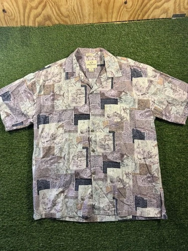 Sunset Breeze Shirt Mens XL Beige Fishing Tropical Graphic Button Front Casual